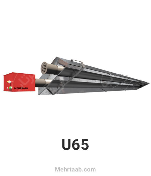 مهرتاب این هیترها را در دو نوع U شکل دو لوله و L شکل تک لوله تولید میکند که مدلهای دو لوله مناسب گرمایش فضاهای باز و مرتفع صنعتی بوده و مدلهای تک لوله مناسب گرمایش فضاهای با ارتفاع کم مانند گلخانه و مرغداری است.